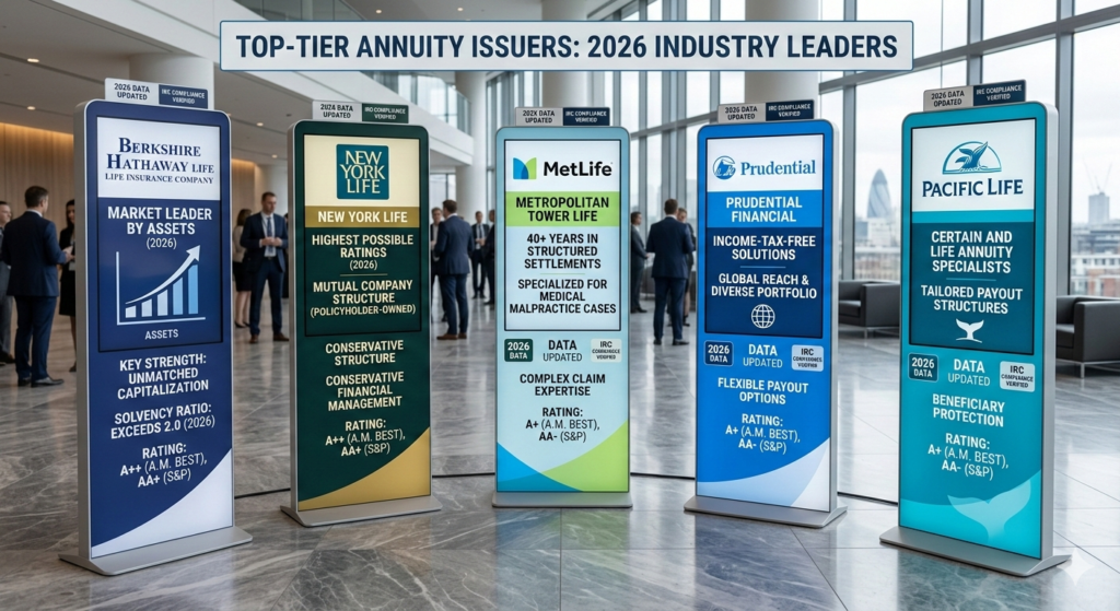 Important Distinction: Do not confuse Annuity Issuers (the life insurance companies listed above) with Factoring Companies (companies like J.G. Wentworth that buy existing settlements). The companies in this article are the ones who provide the guaranteed income, not the ones who buy it for a lump sum.